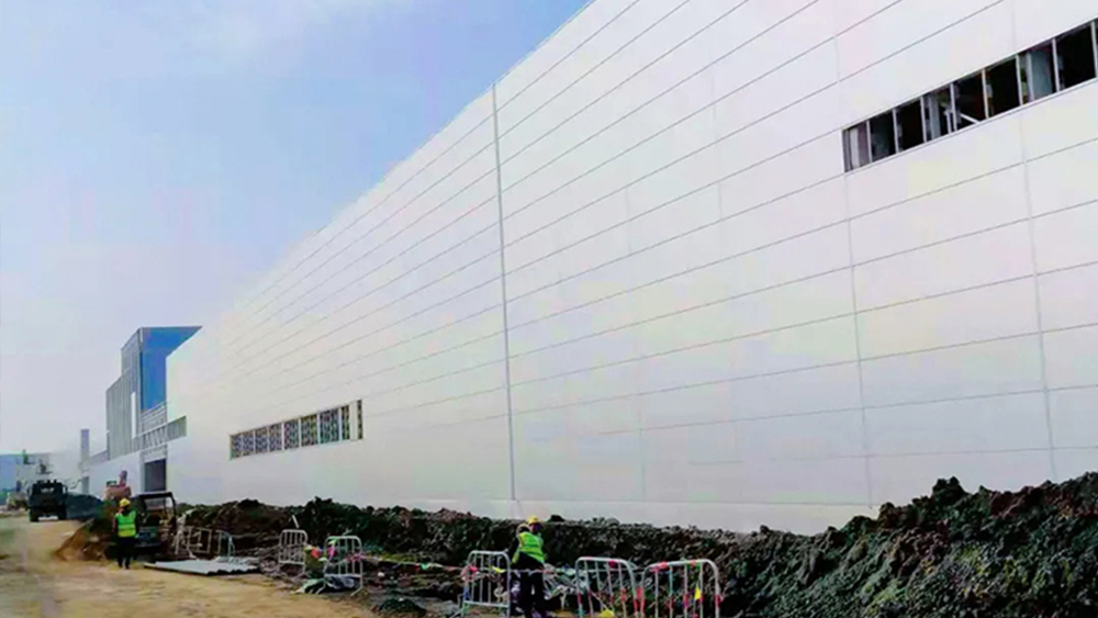 墻面外板使用BaoAM®高鋁鋅鋁鎂基板的彩涂,牌號(hào)TS300GD+AM150,自潔PVDF白銀灰。