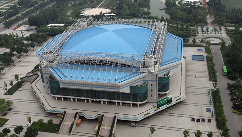 西安市體育館于1997年開始建設(shè),1999年8月竣工。它是西安體育中心的標(biāo)志性建筑,先后承辦了第四屆城市運(yùn)動(dòng)會(huì)體操比賽和閉幕式,中國東西部經(jīng)濟(jì)合作與貿(mào)易洽談會(huì)開幕式等活動(dòng)。采用寶鋼海藍(lán)聚酯彩涂。基板為180克/平方米的熱鍍鋅,牌號(hào)為TSt01。使用了12年后,涂層顏色依然鮮艷