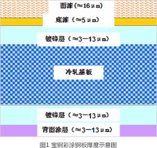 圖1;寶鋼彩涂鋼板厚度示意圖